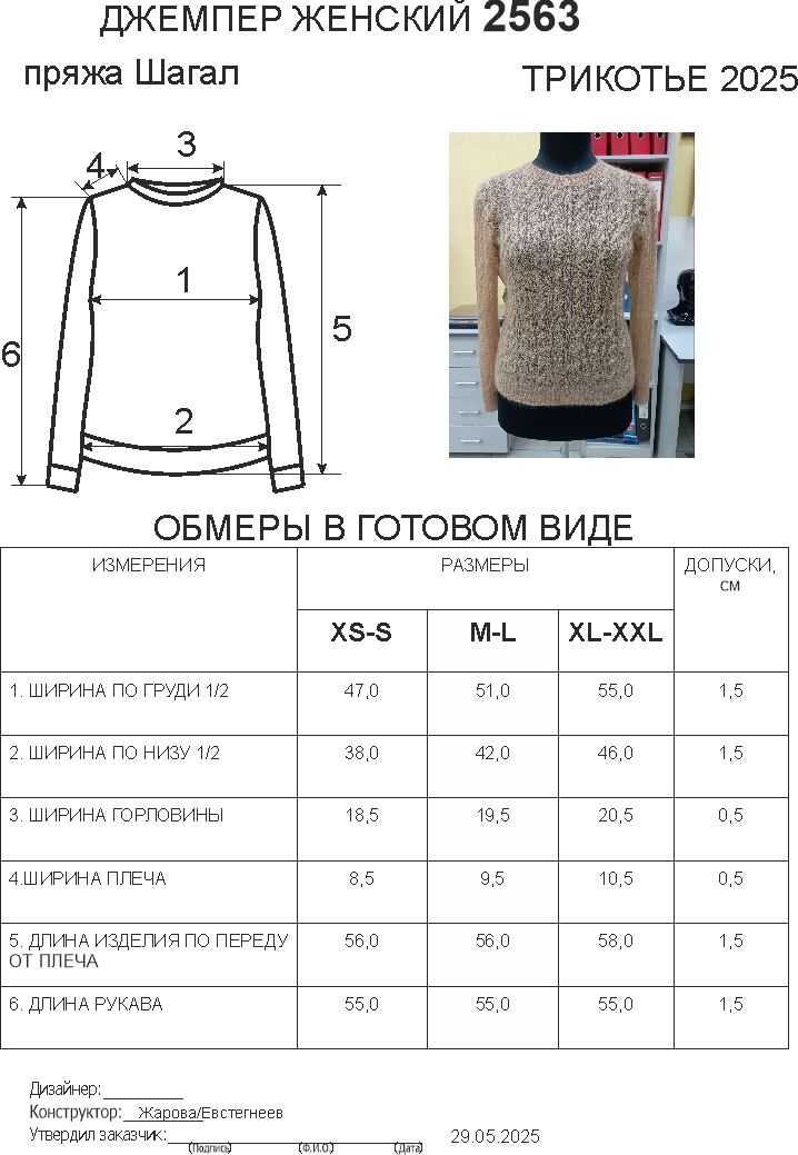 Женский джемпер 2563 Артикул: 2563S Состав: 65% супер мохер 35% полиамид фибра Размер: 44-46, 48-50, 52-54 Сезон: Весна-Осень Бренд: Tricotier теплый бежевый оранжевый красный светло-розовый желтый светло-бирюзовый белый Купить Обмерные данные