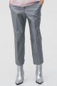 Брюки женские из плотной вискозной ткани с поблескивающим эффектом. Прямые, слегка зауживающиеся к низу, длина 7/8. Посадка высокая. Карманы боковые объемные. Застежка-молния, пояс на резинке. Фасон брюк стал очень популярен, благодаря практичности в непогоду и возможности продемонстрировать красивую обувь.