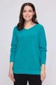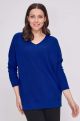 Джемпер женский прямого силуэта из гладкой хлопчатобумажной пряжи. Длина изделия до середины бедра, втачной рукав - 3/4 и V-образная горловина пропорционально вытягивают фигуру, делаяя ее стройнее и изящнее.