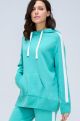 Свитшот прямого силуэта, низ манжетой без утяжки и небольшими боковыми разрезами. Капюшон на завязках. Карман-кенгуру служит не только в качестве декоративного элемента, но и предназанчен для комфортного размещения обеих рук в нем. Рукава-реглан отделаны широкими лампасами и широкой манжетой. Комфортно и стильно - залог хорошего настроения!